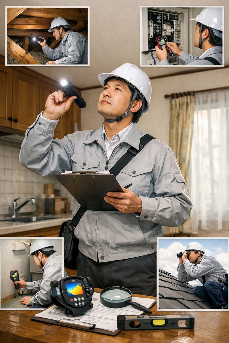 主に「劣化・不具合・欠陥の有無」を目視や簡易測定で確認します。